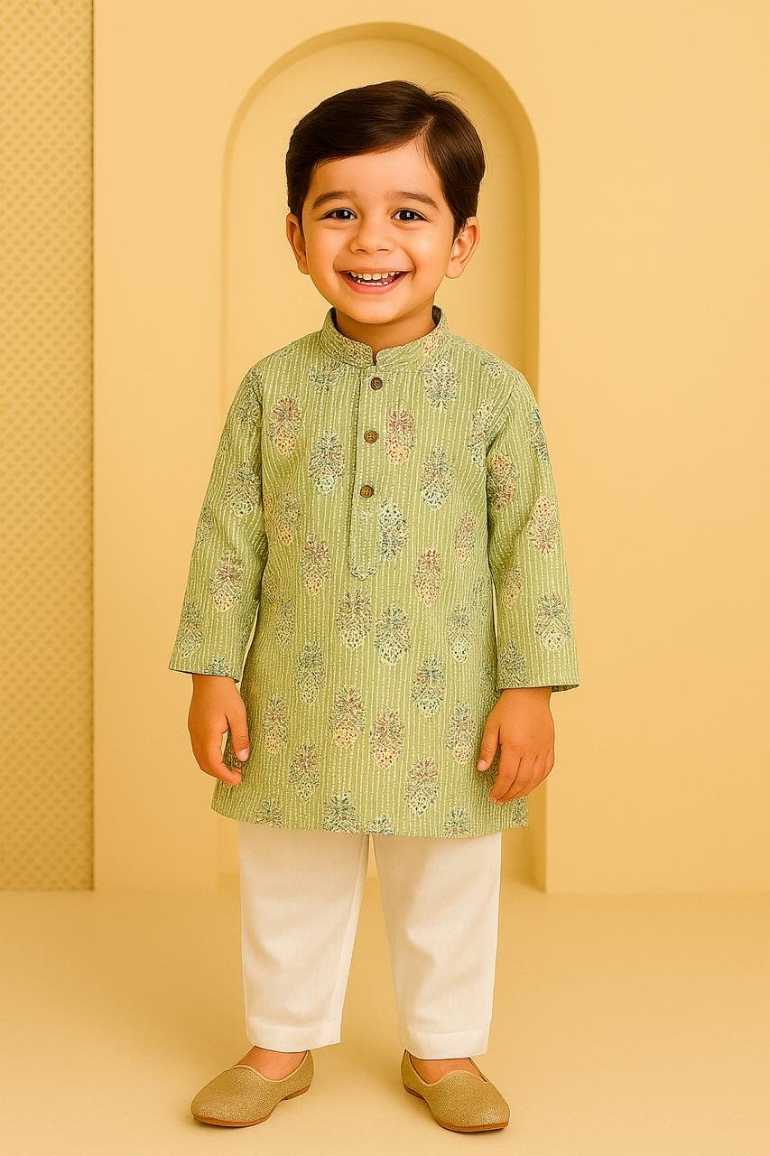 Green Kurta Pyjama Set for Boy’s – 2-Piece Classic Ethnic Wear