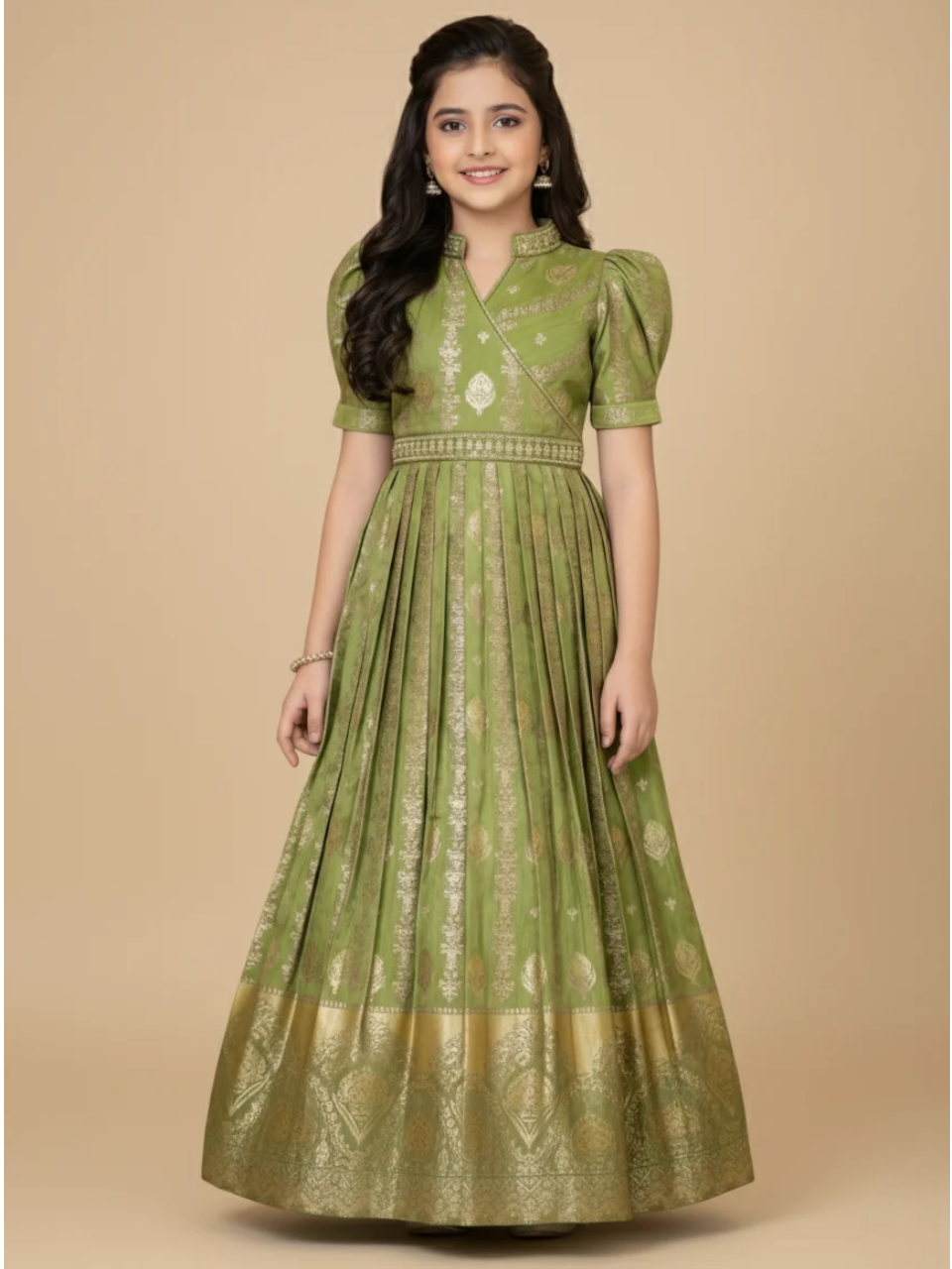 Graceful Light Green Ethnic Gown for Girl’s – 1 Pc Designer Outfit