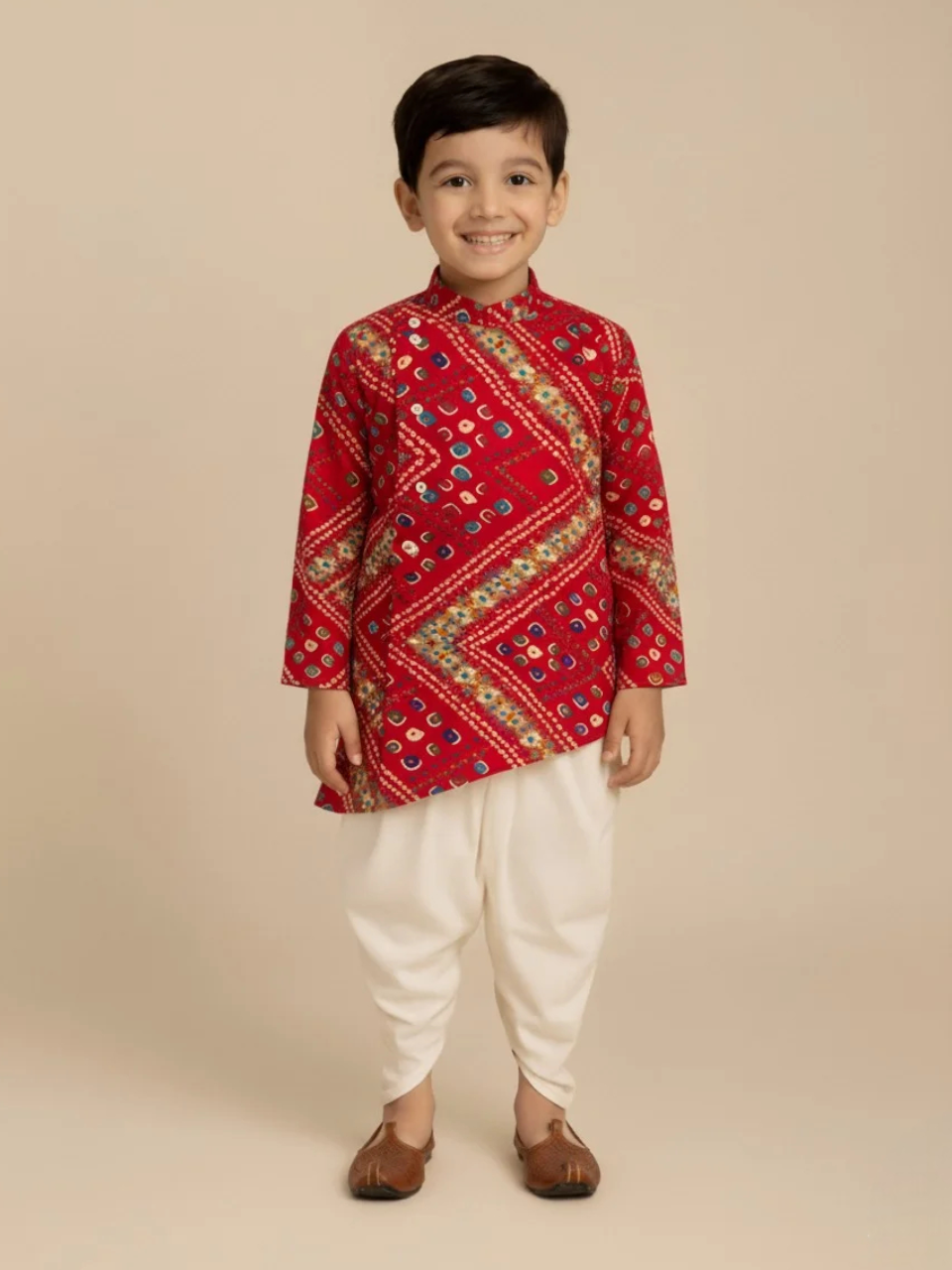 Red Bandhani Kurta Set for Boy’s – 2 Pc Traditional Outfit