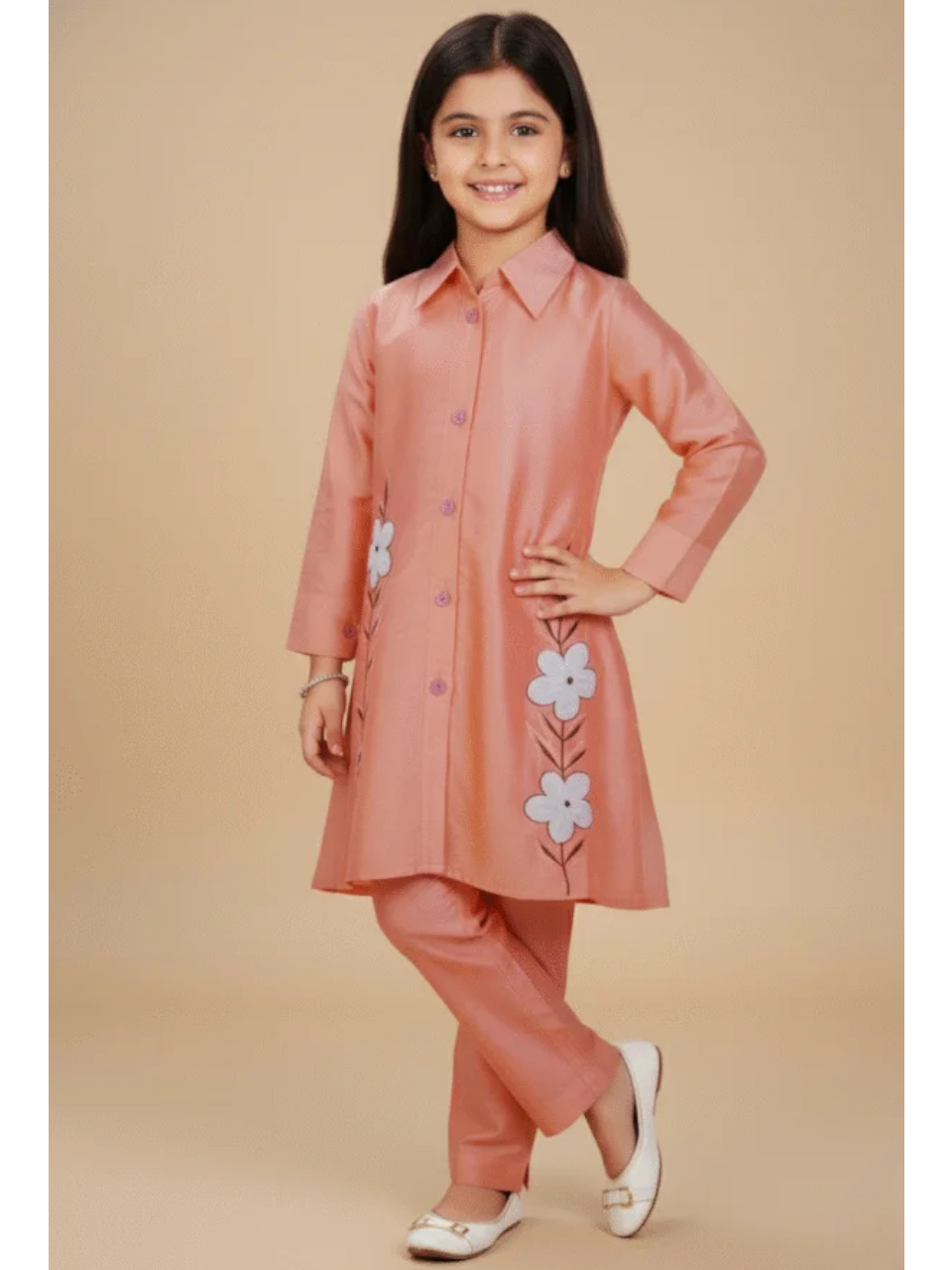 Serene Peach Floral Embroidered Top With Plazo Pants for Girls – 2 Pc Outfit