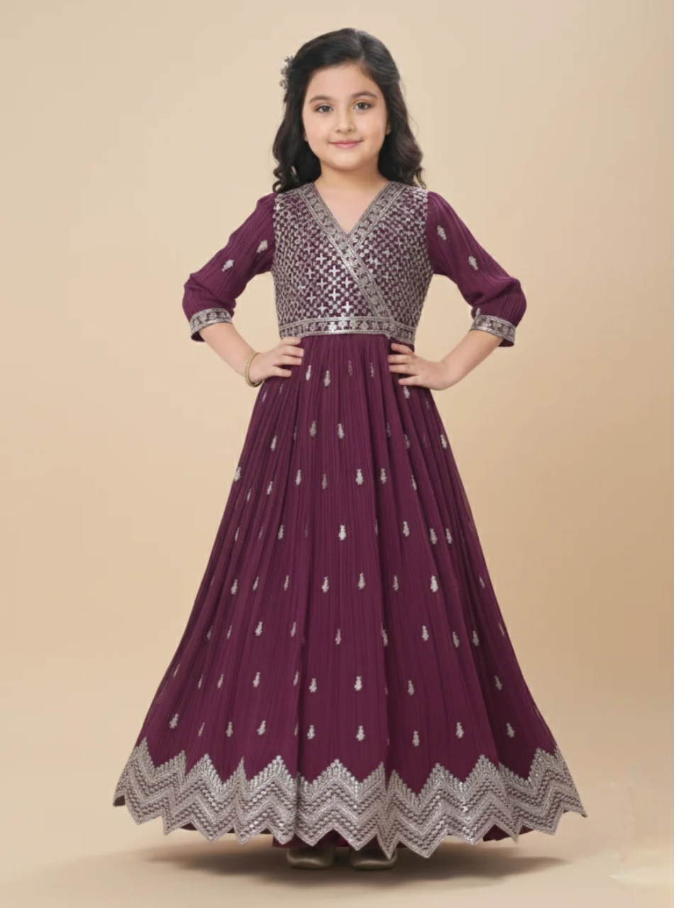 Vibrant Wine Ethnic Gown for Girl’s – 1 Pc Designer Outfit