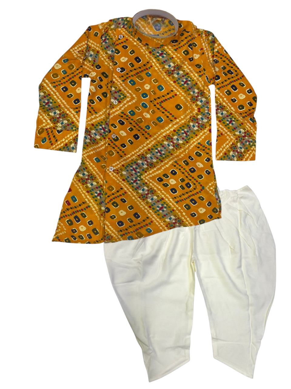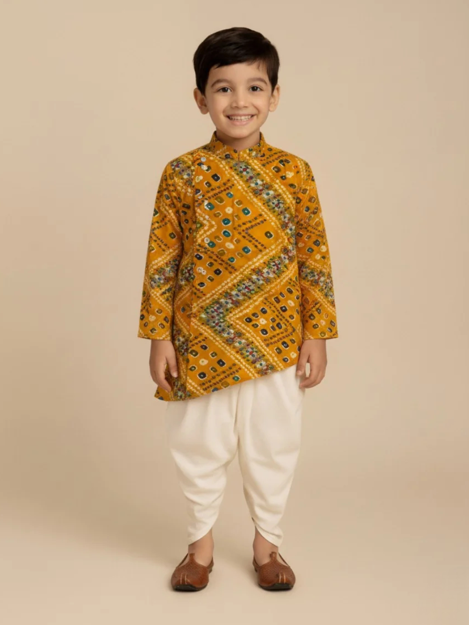 Yellow Bandhani Kurta Set for Boy’s – 2 Pc Festive Wear